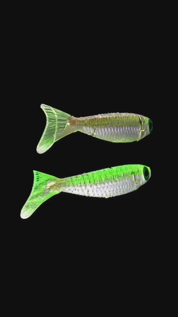 UV reactive - great for muddy water, dark water conditions, low lighting conditions or night fishing. UV flashlight is required to charge it up for night fishing. Sold separately.
