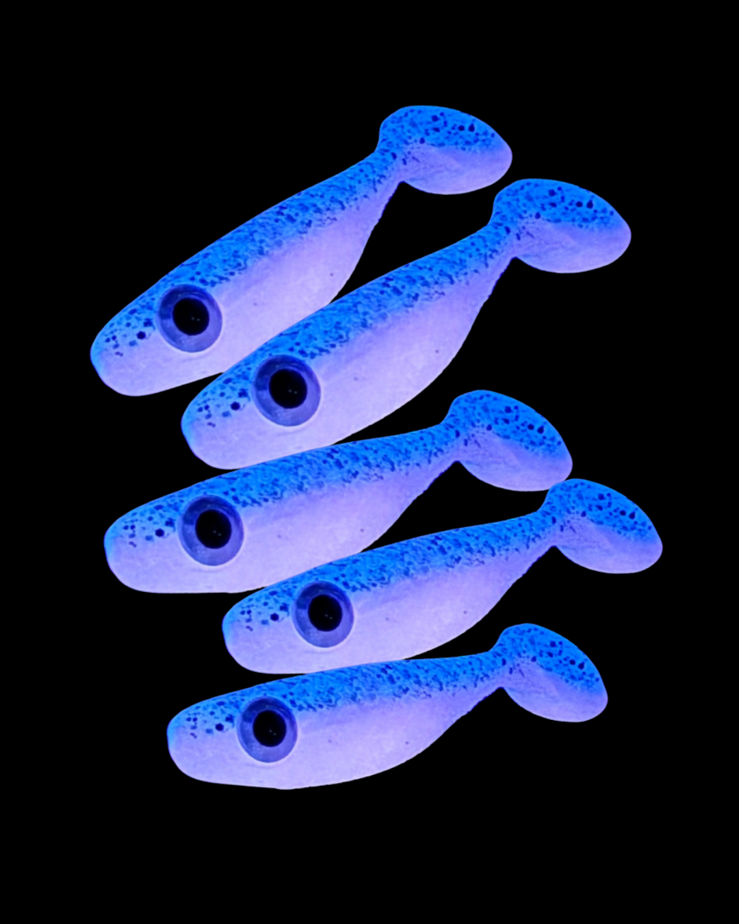 UV reactive - great for muddy water, dark water conditions, low lighting conditions or night fishing. UV flashlight is required to charge it up for night fishing. Sold separately.